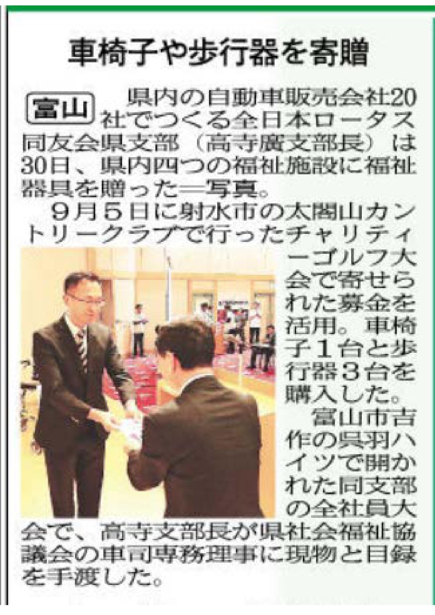 車椅子と歩行器を障害を寄贈させて頂きました。